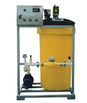 單泵單控式自動加藥裝置是由一個計量箱、一臺計量泵、連接管路、閥門、底座等組成,是計量加藥設備是最為簡單的,加藥控制是由計量泵自身來控制。