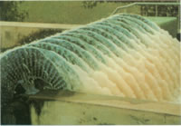 生物接觸氧化法是以附著在載體(俗稱填料)上的生物膜為主,凈化有機廢水的一種高效處理工藝。目前已廣泛地應用于紡織印染、毛紡針織、啤酒食品、石油化工化肥廢水、醫療及生活污水等處理,并獲得了明顯地環境效益、社會效益和經濟效益。近年來,隨著給水需量地增加,加上河水、湖泊水等地表水不同程度地受到大面積有機污染,采用接觸氧化法工藝進行處理。多年來,該工藝因具有高效節能、占地面積小、耐沖擊負荷、運行管理方便等獨特優點而被設計部門廣泛采用,深受用戶的歡迎和青睞。 生物膜載體……填料是接觸氧化法工藝的核心部分,它直接影響著處理效果、充氧性能、基建投資、運行周期和費用。本廠生產推出的立體彈性填料和混合式立體彈性填料是我廠經各種條件和大量試驗和長時間生產性運行結果表明為理想的載體填料。由于該填料獨特的結構形式和優良的材質工藝選擇,使其具有使用壽命長、充氧性能好、耗電小、啟動掛膜快、脫膜更新容易、耐高負荷沖擊,處理效果顯著、運行管理簡便、不堵塞、不結團和價格低廉等優點。該填料在不同的工藝水質條件應用時,可調節絲條粗細密度及不同的組裝形式,完全適用各種廢水的厭氧、兼氧、好氧等處理工藝。該填料屬國內外首創,其結構、性能具有國際先進水平。 |