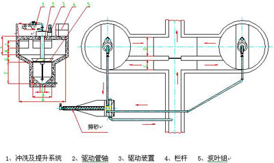 二、ZXS型旋流除砂設(shè)備 旋流式沉砂除砂機(jī)是一種新型的砂水分離工藝.該產(chǎn)品主要由驅(qū)動(dòng)裝置、攪拌機(jī)構(gòu)、操作平臺(tái)、吸砂系統(tǒng)、電控系統(tǒng)等部分組成。
