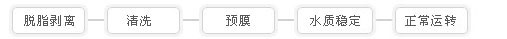 工藝過程 (一)殺菌剝離: 1、循環時間為20小時左右。 2、用藥:清洗劑、分散剝離劑、殺菌滅藻劑。 說明:以上藥品是殺菌、滅藻、發酵、分散剝離藥品,主要是殺死細菌藻類,疏散生物粘泥。 (二)化學清洗: 1、循環時間為20小時。 2、用藥:除垢劑、分散剝離劑、除銹劑、緩蝕劑。 說明: 以上藥品是除銹、險垢的作用,通過化學置換反應使垢、銹與化學藥劑化學反應,生成易溶于水的物質,有利于排出循環系統。做到既不阻塞管道,又不損害金屬管壁。 (三)預膜: 1、循環時間為24-72小時。 2、用藥:預膜劑、預膜輔助劑、除銹劑、緩蝕劑。 說明:預膜藥劑有雙重效果,一種效果是進一步清洗管道內壁,保持金屬管壁清潔度。一種效果是通過各種藥劑在溶于水的狀態下,在金屬管壁上緊密依附,形成致密的高分子藥膜,從而阻止金屬管壁的氧化和水中鈣、鎂離子形成垢。 (四)水穩藥: 1、循環時間為30分鐘左右。 2、用藥:水穩藥、預膜劑、緩蝕劑、濕保劑(冷卻水專用)。 說明:根據水的溫度和天氣的變化,調整用藥,加入水穩藥后,只要藥的成份不丟失,整個水循環的水溶液可長期保持管道內壁清潔,確保空調正常運行。 (五)保養: 中央空調的循環系統,重在保養,不在清洗。我公司承諾每月及時檢查循環水,保證空調在無垢、無銹、無菌的狀態下運行。 清洗后的效果 1、中央空調的循環水管壁內清潔,無垢、無銹、無菌藻。 2、水質干凈無渾濁。 3、空調各大熱交換系統熱交換正常。