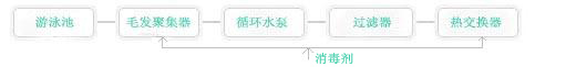 游泳池循環水處理設備是我公司在參照國內外同類產品的基礎上,結合我國實際情況研制開發的游泳池水處理設備。適用于各類游泳池水的循環處理。它包括常規發毛 聚集器,多介質石英砂過濾器及熱交換器。其特點是配備了絮凝劑自動投加系統 ,水質 PH 自動調整,消毒劑自動添加的監控系統,從而確保了游泳池水質澄清度, PH 值和最佳余氯濃度(保持無菌)。且占地面積小,運行管理方便,維護量小,大量的省藥劑費用和避免多投藥劑污染水質,適用于高檔賓館,飯店娛樂池及比賽池,家庭泳池等。 工作原理 游泳池內的水先進入毛發聚集器,去除池水中較大顆粒固體雜質、毛發、纖維和樹葉,即預凈化。而后,水流與泵前加入的混凝劑溶液一起流入循環工作泵,充分混合并加壓后,進入機械過濾器。絮凝后,小顆粒懸浮物被濾網截留,過濾后的水經過濾器底部流出,經消毒后的水趨勢進入換熱器,經過加熱再回到游泳池。如此反復循環,使游泳池水得到凈化。