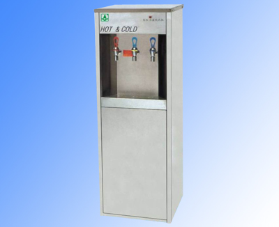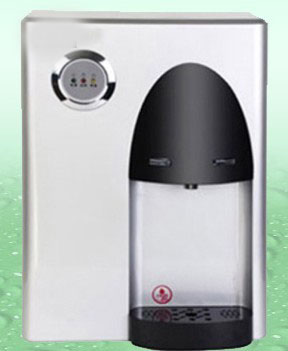 產(chǎn)品特色: 功能獨(dú)特: 內(nèi)設(shè)美國RO逆滲透膜,全自動(dòng)工作流程,直接自來水管,經(jīng)內(nèi)部纖維棉、活性碳、RO逆 滲透膜、后置活性碳等多層濾芯過濾出來的純水水質(zhì)衛(wèi)生甘甜,達(dá)到國際飲用水水質(zhì)標(biāo)準(zhǔn),并同時(shí)具有熱(82°C-95°C)、冷(5°C-15°C)二種不同溫度純水供您享用。 配置有冰水(壓縮機(jī)制冷),溫水,熱水三用。故障、停電、缺水、水滿或水壓不足時(shí)有斷電及斷水等保護(hù)功能 。 熱水系統(tǒng)采開放式無壓力設(shè)計(jì),不會(huì)因水源壓力或加熱時(shí)產(chǎn)生高壓危險(xiǎn)。制熱系統(tǒng)采用已獲國家專利的回流預(yù)熱系統(tǒng)(比傳統(tǒng)飲水機(jī)省80%電)。 外形美觀: 采用表面光亮的塑料外殼,易于清理;流線型的機(jī)身設(shè)計(jì),高貴典雅;體積更小,特別 適合家庭和小型辦公室使用。 品質(zhì)優(yōu)良: 內(nèi)膽采用不銹鋼材質(zhì),全封閉式水槽,杜絕了二次污染以及滲漏問題,配以發(fā)熱管制熱 ,耗電低,性能可靠耐用,經(jīng)濟(jì)實(shí)惠。 造水量大: 15.7升/小時(shí)(日產(chǎn)水量100加侖)。 費(fèi)用低廉: 內(nèi)部濾材采用更換式濾芯,每年的更換濾芯費(fèi)用不足200元人民幣。